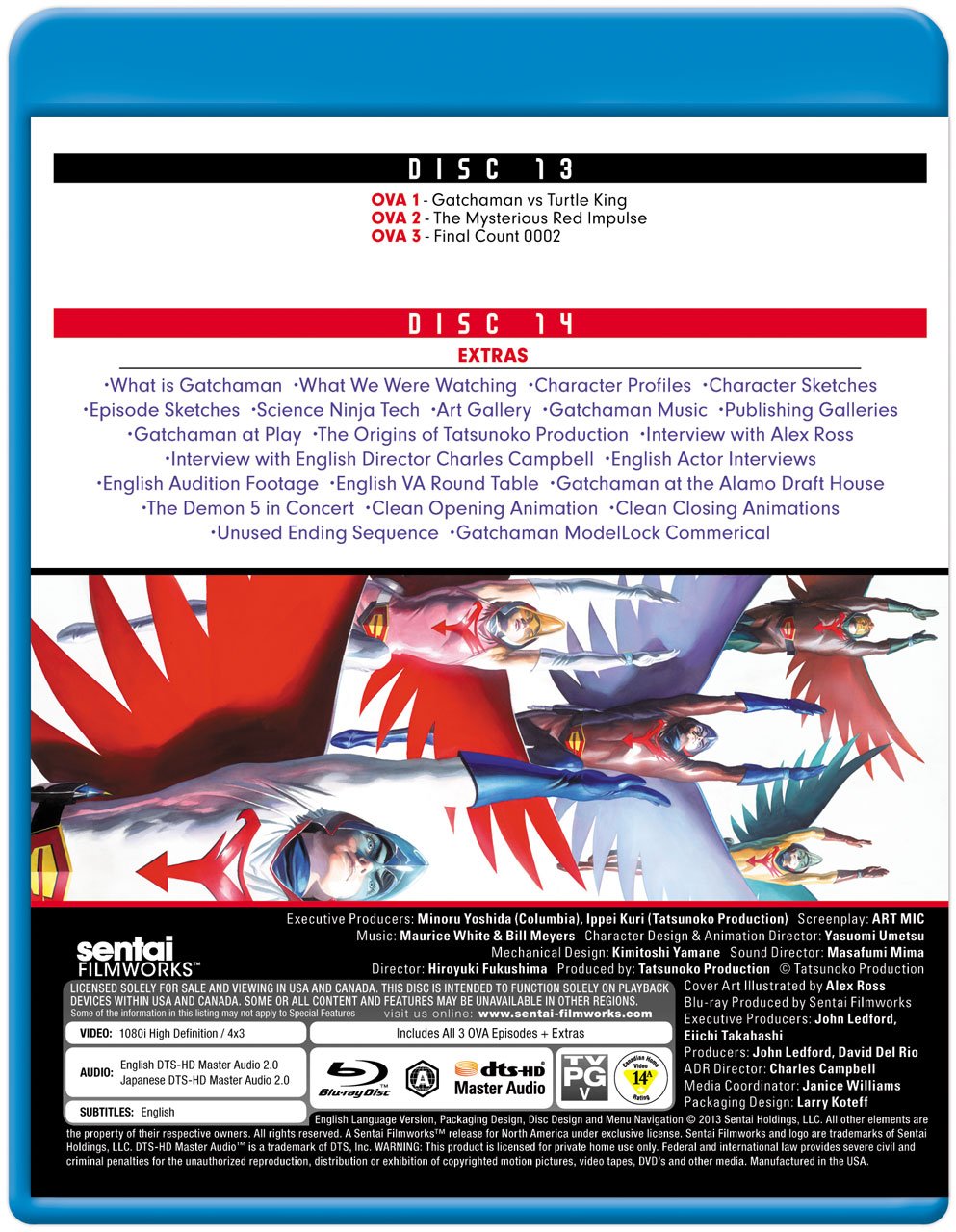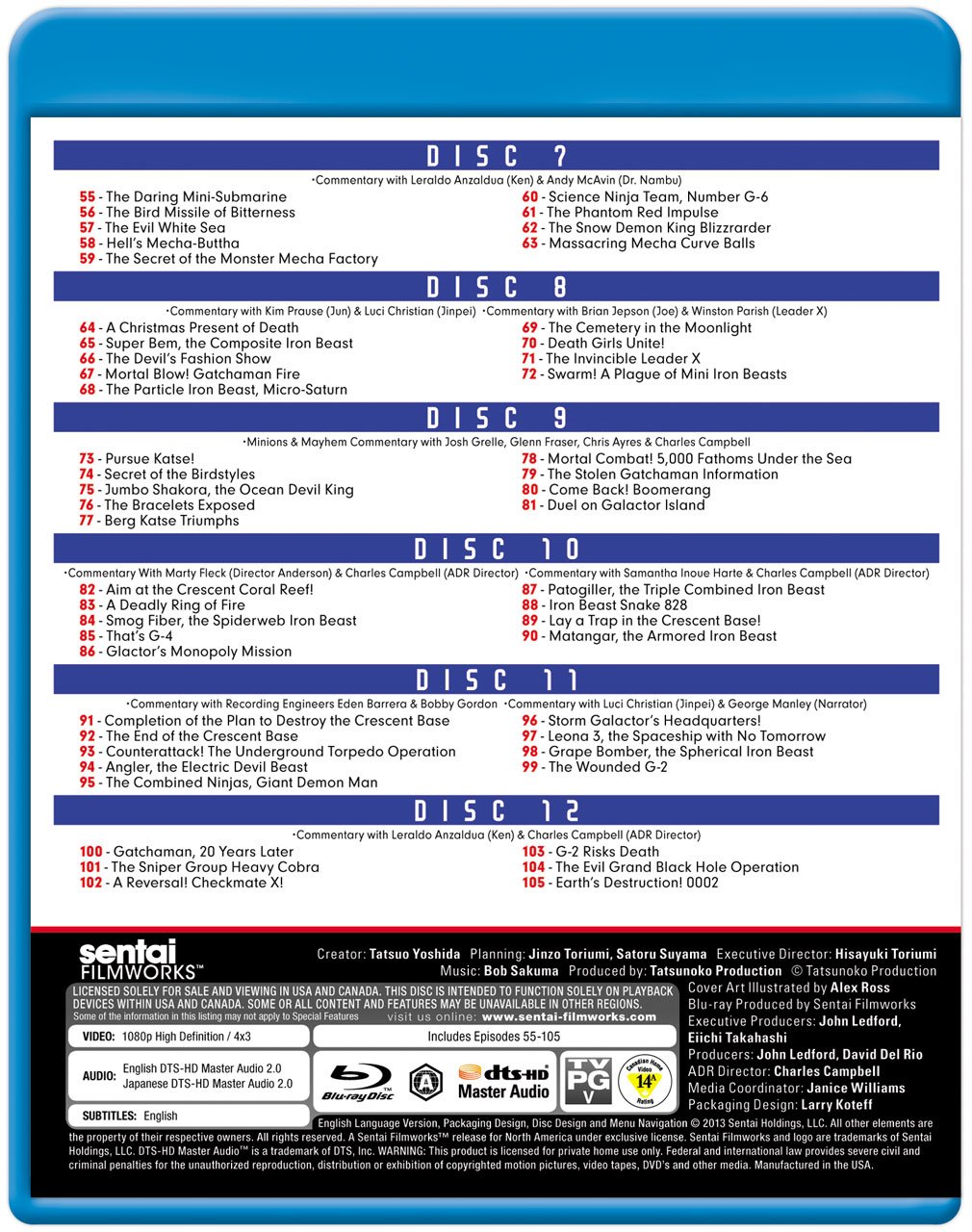 Using amazing weapons powered by super-science, the international terrorist organization known as GALACTOR is out to steal all of Earth's resources for itself and its inhuman masters. Mankind's only hope? The International Science Organization and their elite strike force, the Science Ninja Team! But these five young heroes will have their work cut out for them as they take on the seemingly impossible task of defeating GALACTOR's horrific arsenal of mechanized weapons of mass destruction and endless armies of henchmen. Can costumed commandos Ken the Eagle, Joe the Condor, Jun the Swallow, Jinpei the Sparrow and Ryu the Owl really overcome such overwhelming odds? Utilizing the incredible technology and fighting techniques created by Dr. Nambu, and with the mighty ship the God Phoenix at their command, they just might! It's time for the bad guys to get old-schooled science-ninja style as Japan's original super team defeat evil, one flying kick at a time, in the legendary, one and only GATCHAMAN! "Includes the previously unreleased Gatchaman OVAs!"